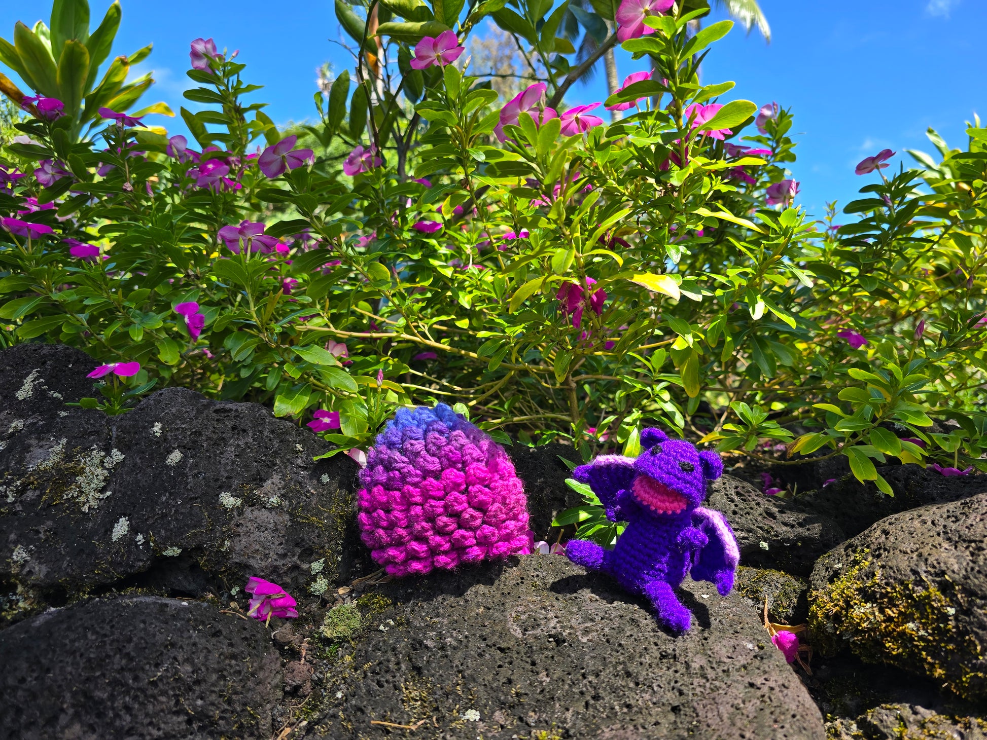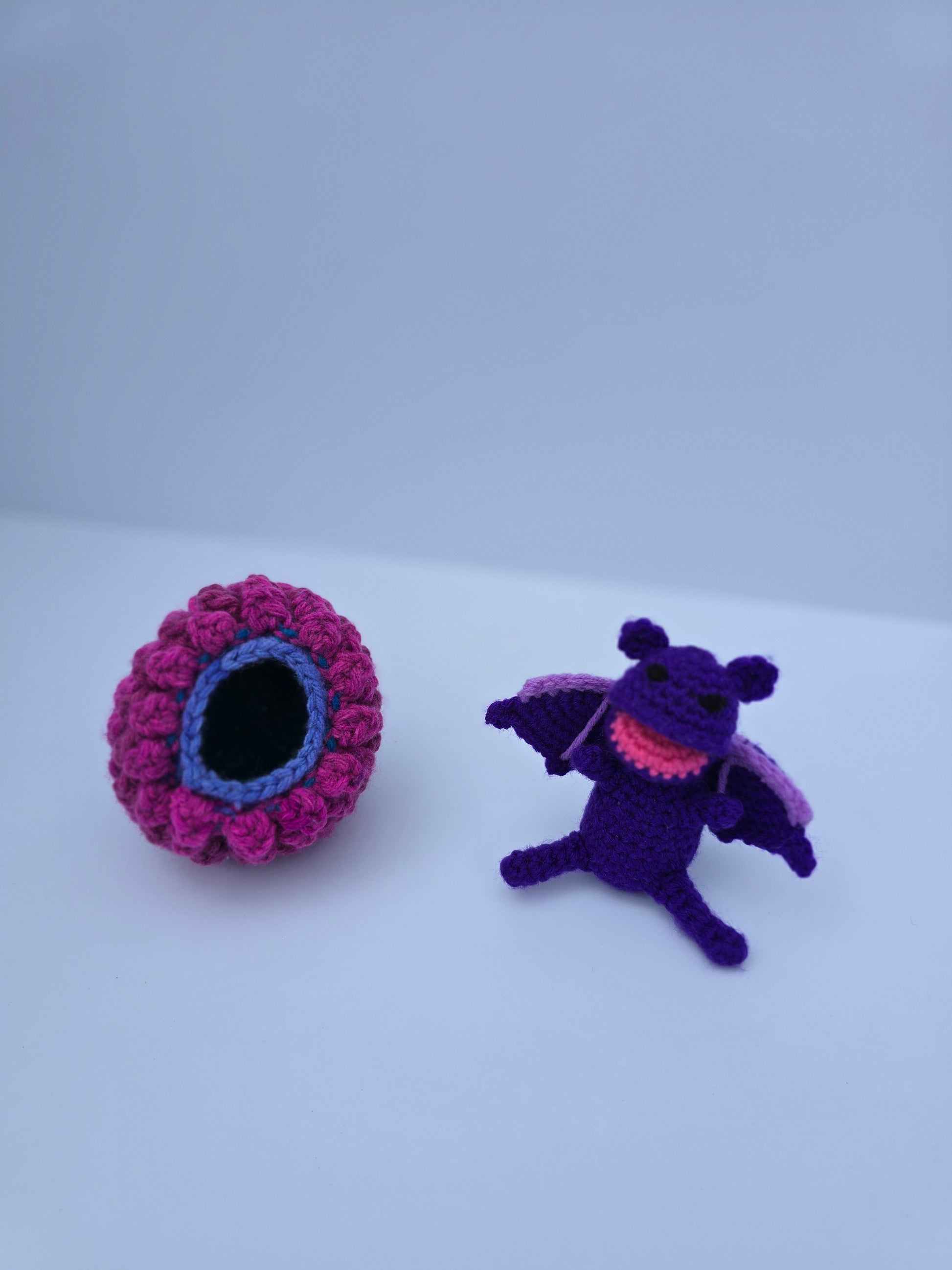 This plush set is handmade by me using the Crochet Dragon Egg Amigurumi pattern by Ami Amour. Finished items are sold with permission and full credit to the original designer.