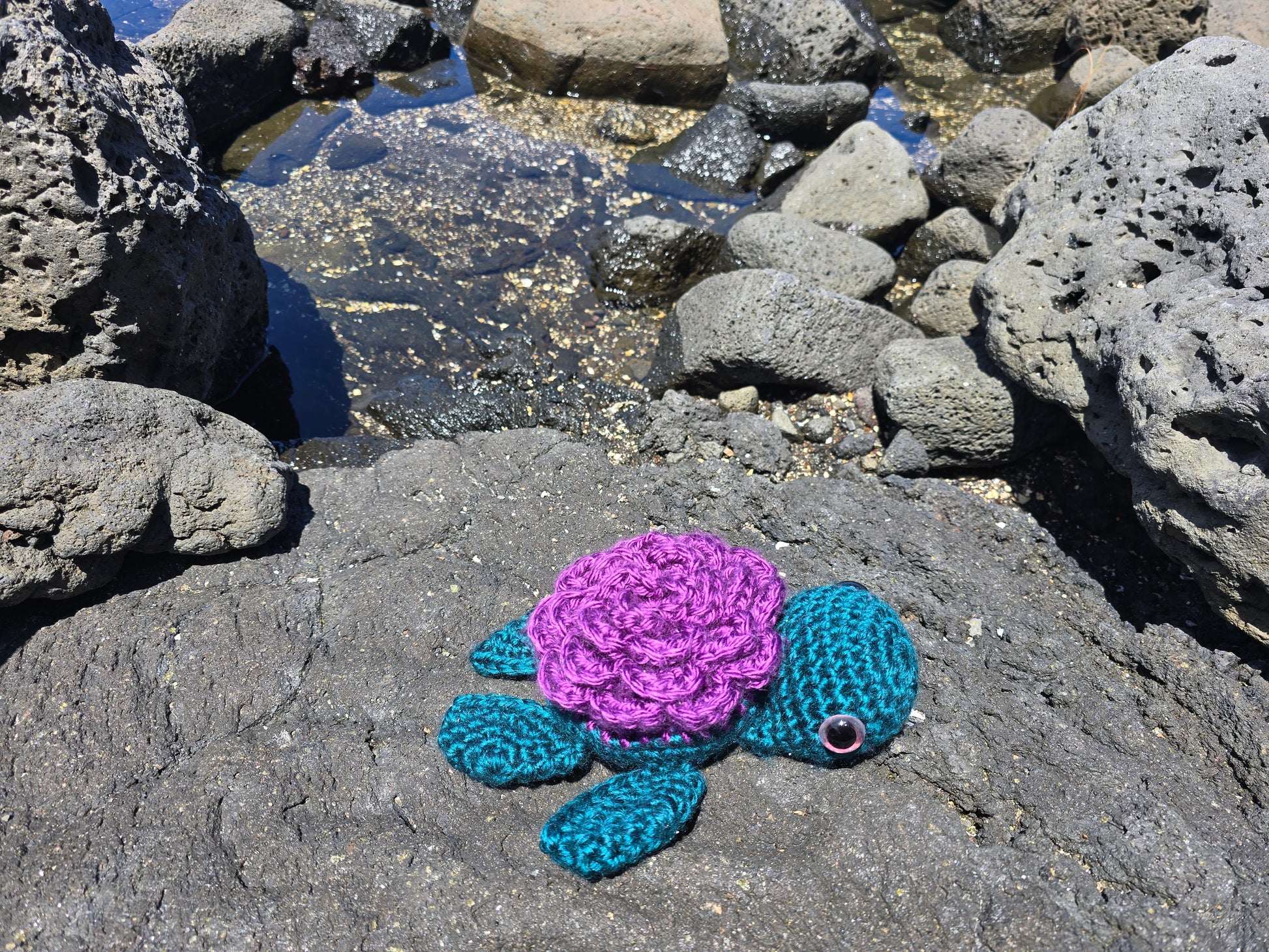 This plushie is handmade by me using the Crochet Rose Turtle pattern by Passionate Crafter. Finished items are sold with permission and full credit to the original designer