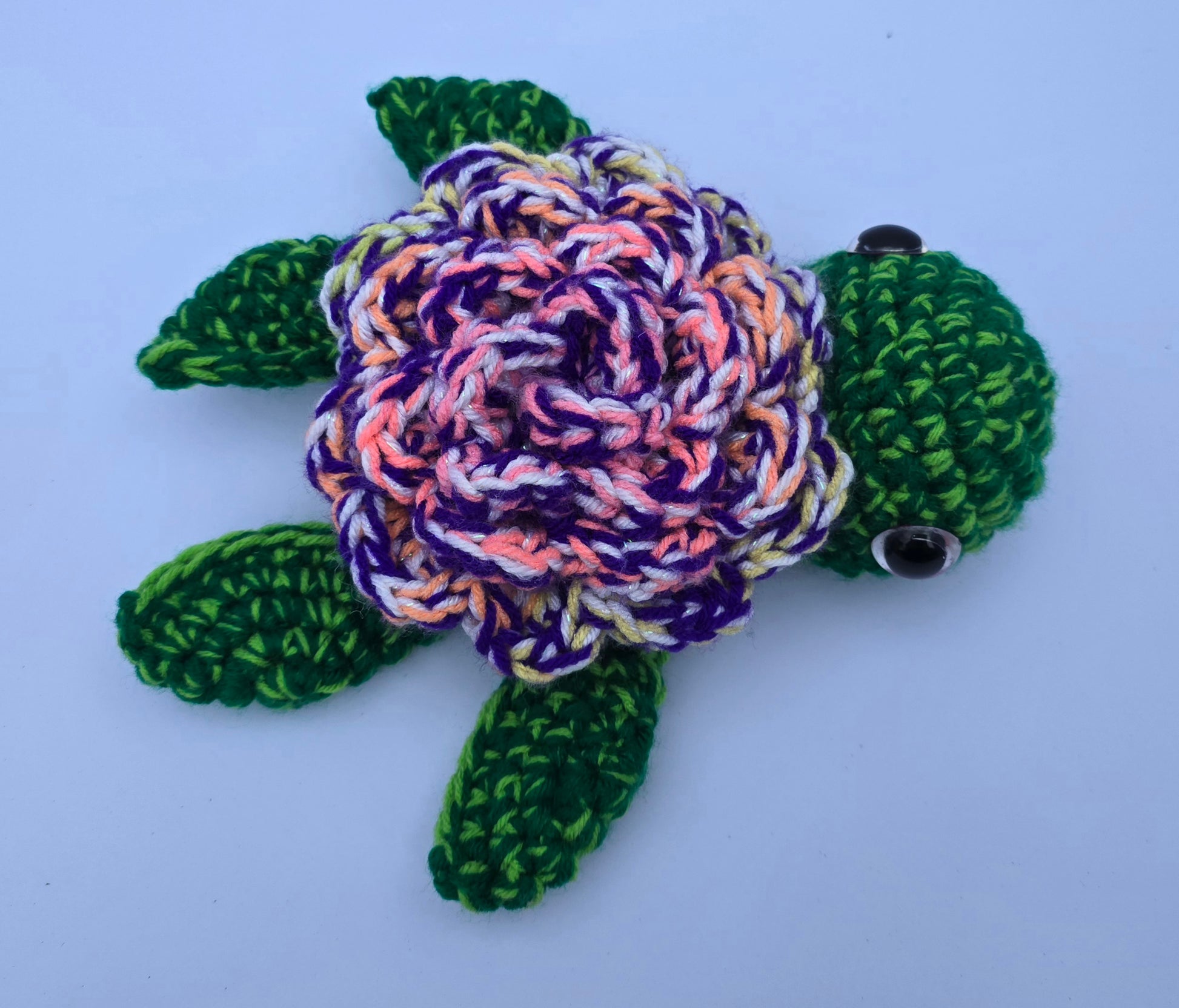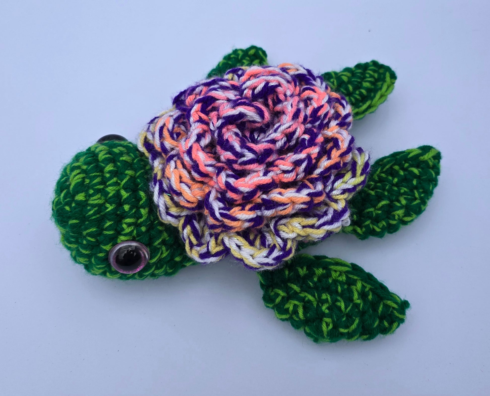 This plushie is handmade by me using the Crochet Rose Turtle pattern by Passionate Crafter. Finished items are sold with permission and full credit to the original designer