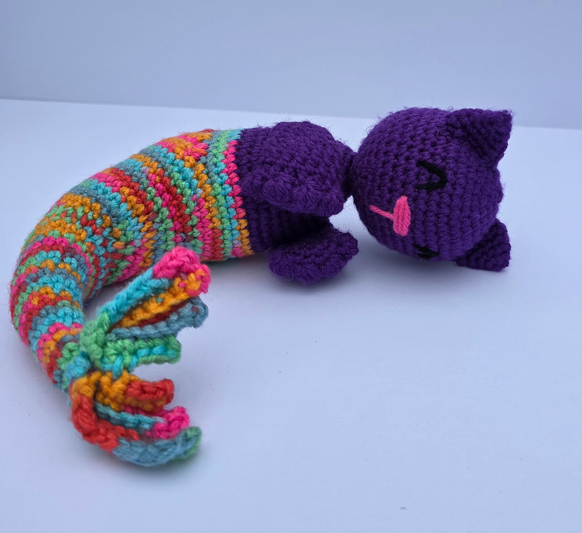 Half cat, half mermaid, and 100% magical—meet the Purrmaid! Hand-crocheted with love, each Purrmaid lays on its back with its tail curled playfully over its body, just like a kitten batting at a toy. Soft, whimsical, and full of charm, these unique companions are the perfect gift for cat lovers, mermaid fans, or anyone who enjoys a touch of fantasy.