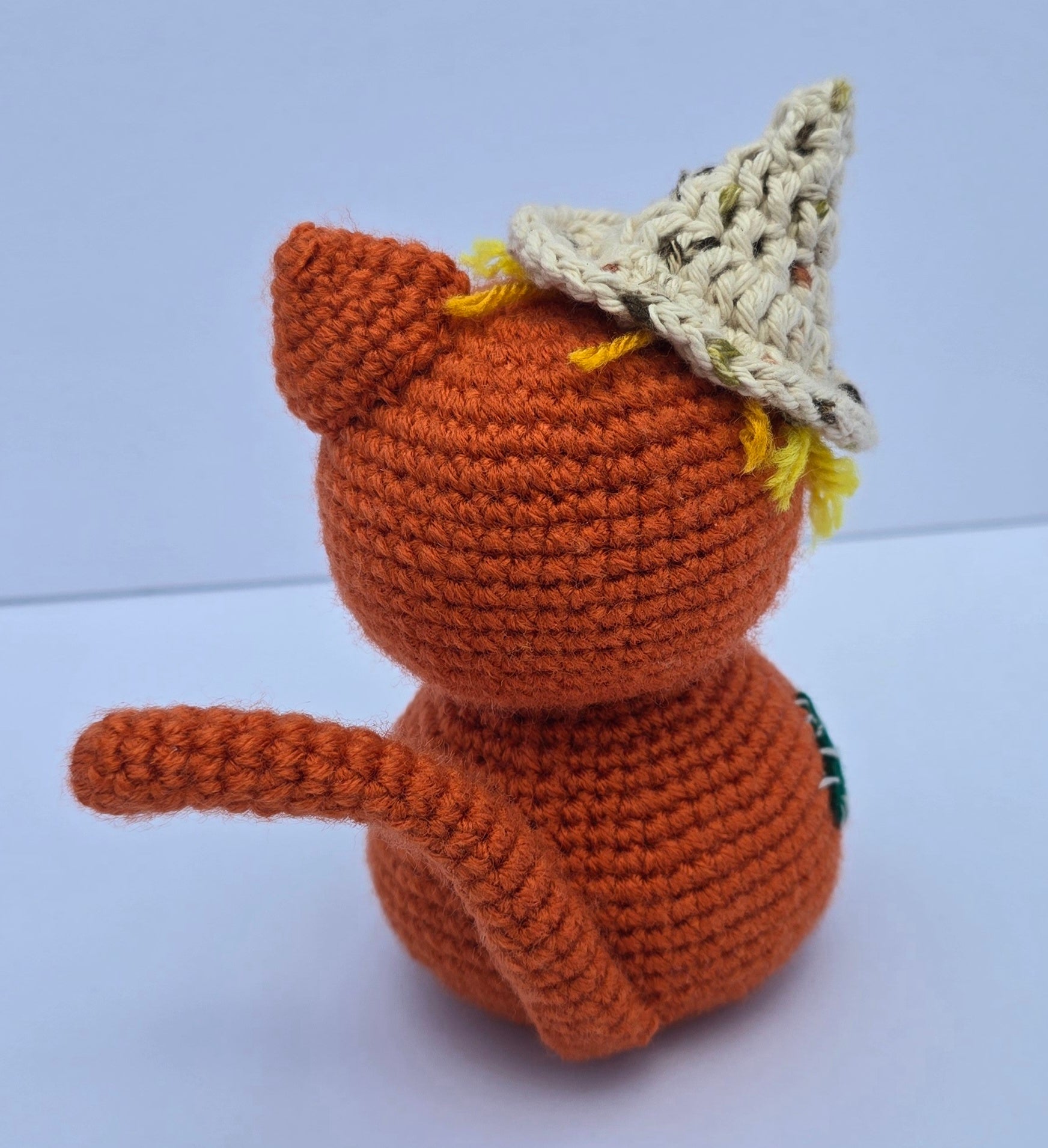 This plushie is handmade by me using the Scarecrow Cat crochet pattern by Enchanted Ladybug. Finished items are sold with permission and full credit to the original designer.