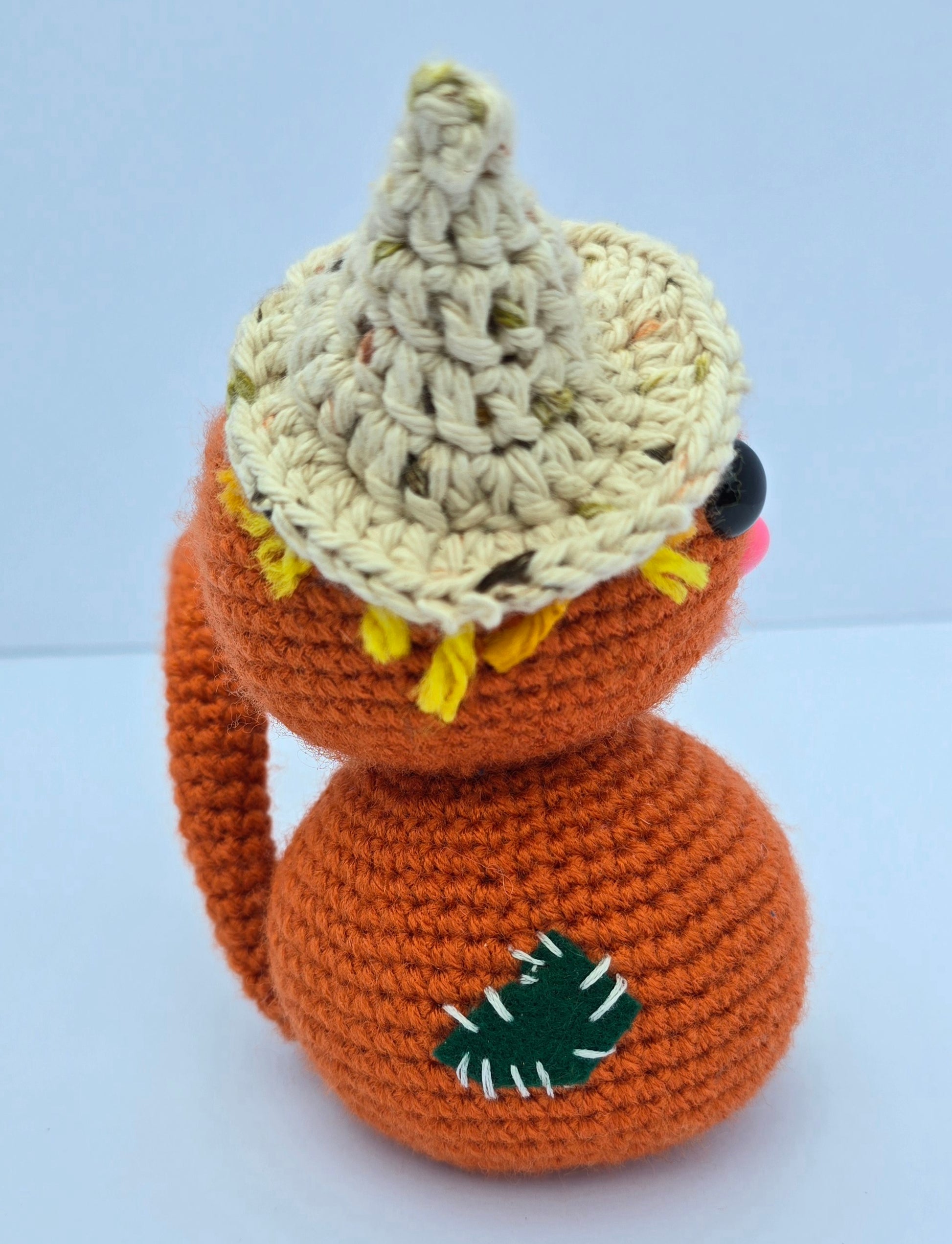 Bring a touch of cozy autumn charm into your home with this handmade Scarecrow Cat. With playful stitched details and festive fall accents, this little cat makes a delightful seasonal decoration. Perfect for Halloween, Thanksgiving, or as a whimsical gift for cat lovers, this scarecrow kitty is full of harvest-time personality.
