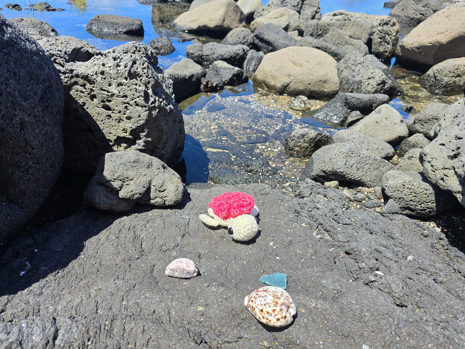 - Handmade crochet turtle with a rose on its shell